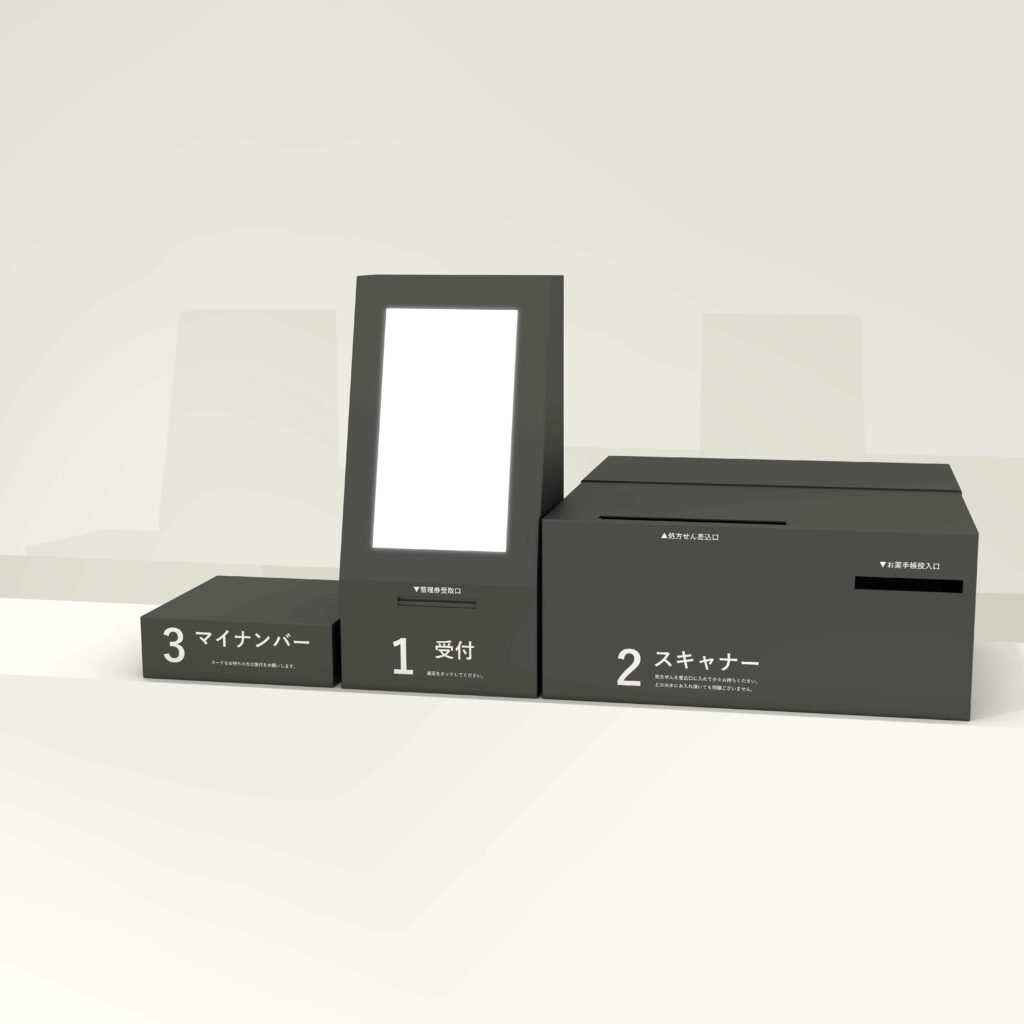 カウンターに置ける「卓上型」や、入り口に置ける「独立スタンド型」など、薬局のスペースや動線に合わせて最適な形状で設置可能です。
